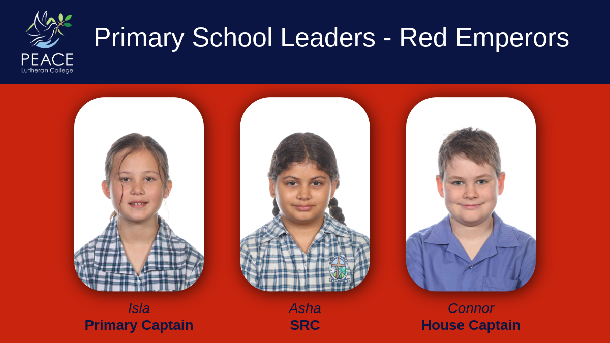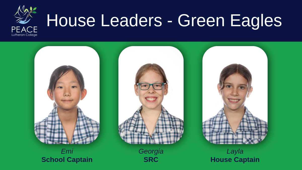 Year 5 students, moving into Year 6 the following year, have the opportunity to be nominated for student leadership positions within each of the College's four school House teams - Blue Dolphins, Gold Dingoes, Green Eagles, and Red Emperors, and The Arts. The positions include: